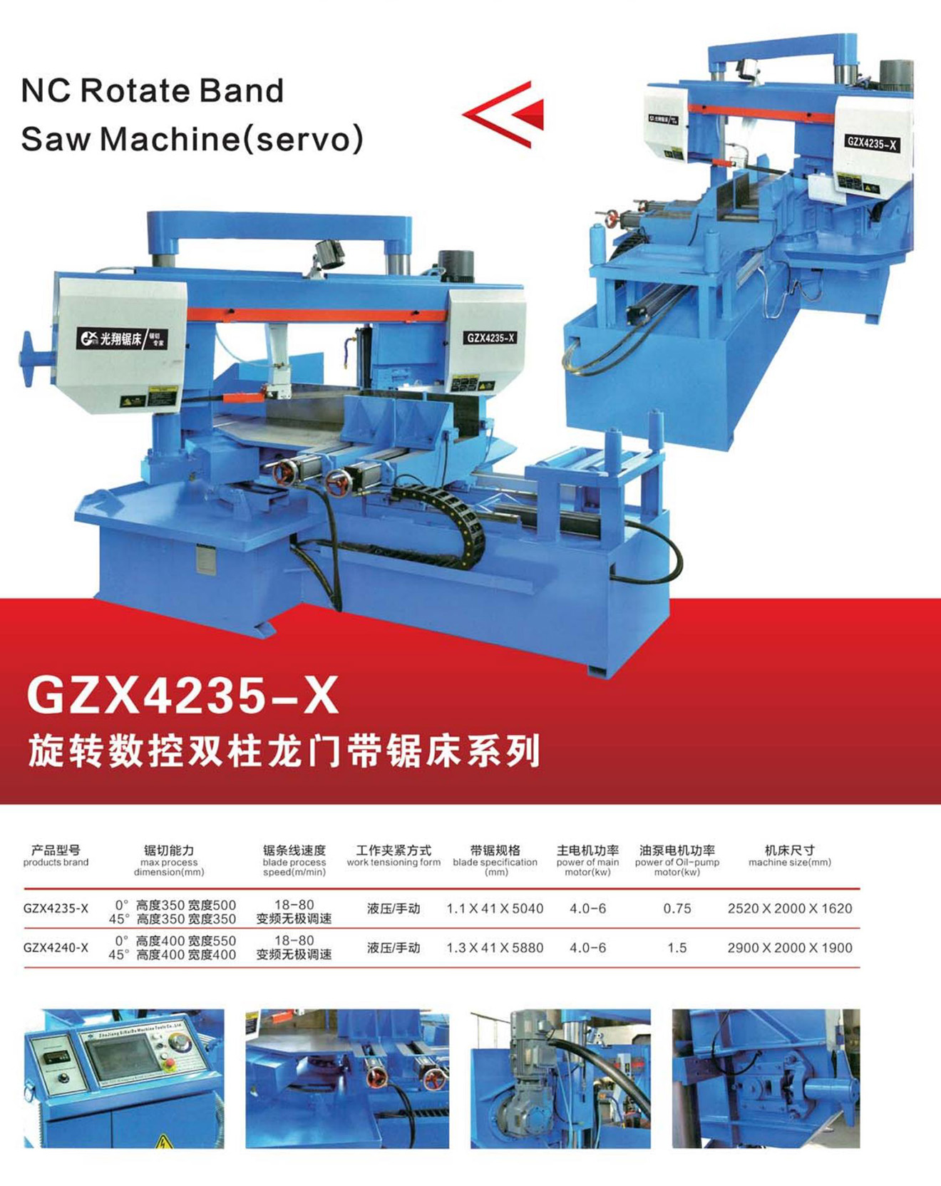 旋轉(zhuǎn)數(shù)控雙柱龍門式帶鋸床(GZX4235-X)